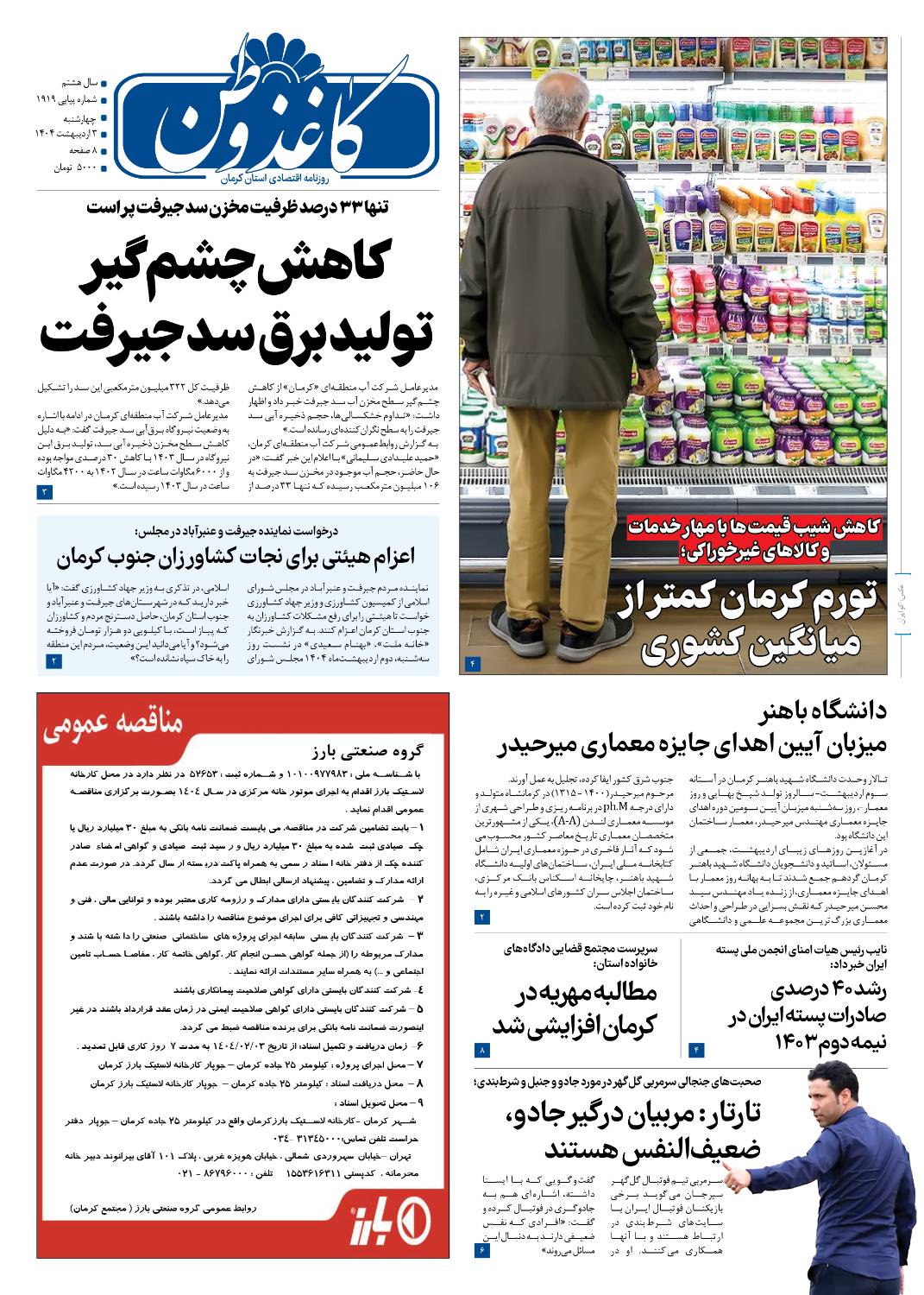 چهارشنبه ۳اردیبهشت ۱۴۰۴