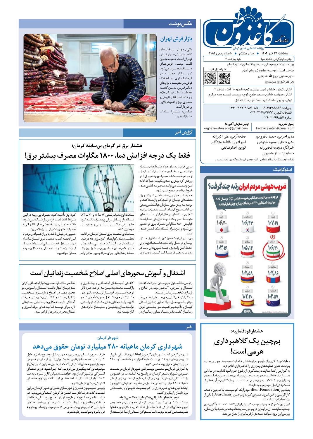 سه شنبه ۳۱تیر ۱۴۰۴